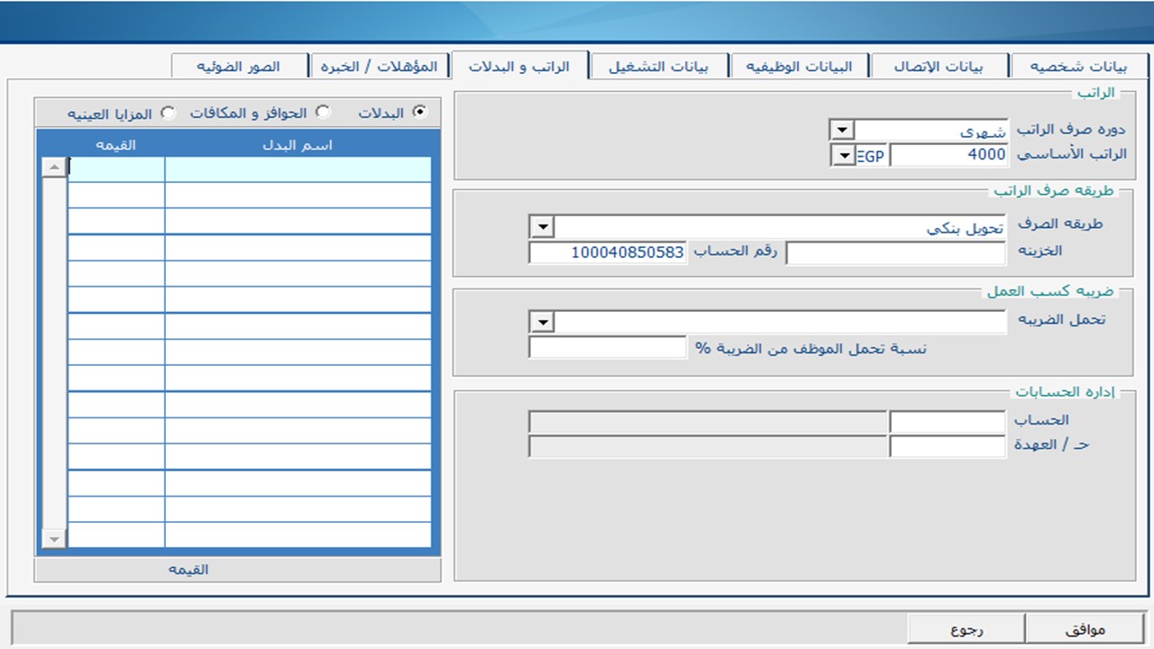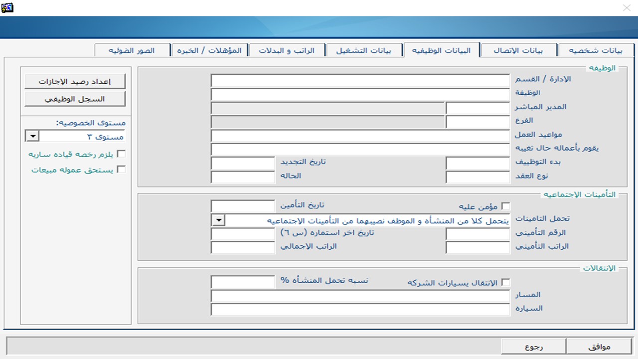 LOGIC worked to establish a system that supports the building of the staff structure in flexible tree infinite branches commensurate with the size of the facility of any size. Including the comprehensive file for each employee with the addition of all data to the employee containing personal data: Code - Name - Type - Date of Birth - Telephone - Mobile - Address - Email - Marital status - Type of identification - Place - number and date of issuance - Bank account number - Bank dealership. Add a photo of the employee in addition to uploading and attaching photos of all the rationale for each employee. The registration of foreign workers data, registration of driving license data. Define the types of jobs with the definition of criteria for evaluating each job and the functions of each of them. Define the penalties list of the company and determine the deduction of the corresponding salary for these sanctions when the penalty repeated more than once. The definition of educational qualifications and functional degree. The definition of departments and subsequent sections within each department. Complete follow-up of the paperwork cycle (recruitment rationale) and extraction. Transfer of an employee from one department to another. Determine the plan to meet the business objectives by identifying current and future needs and organized training for the right employee in the right place, promotion Staff and the consequent change in salary terms. Staff performance evaluation based on the evaluation of each function and the subsequent identification of the bonus or discount for employee standards.
